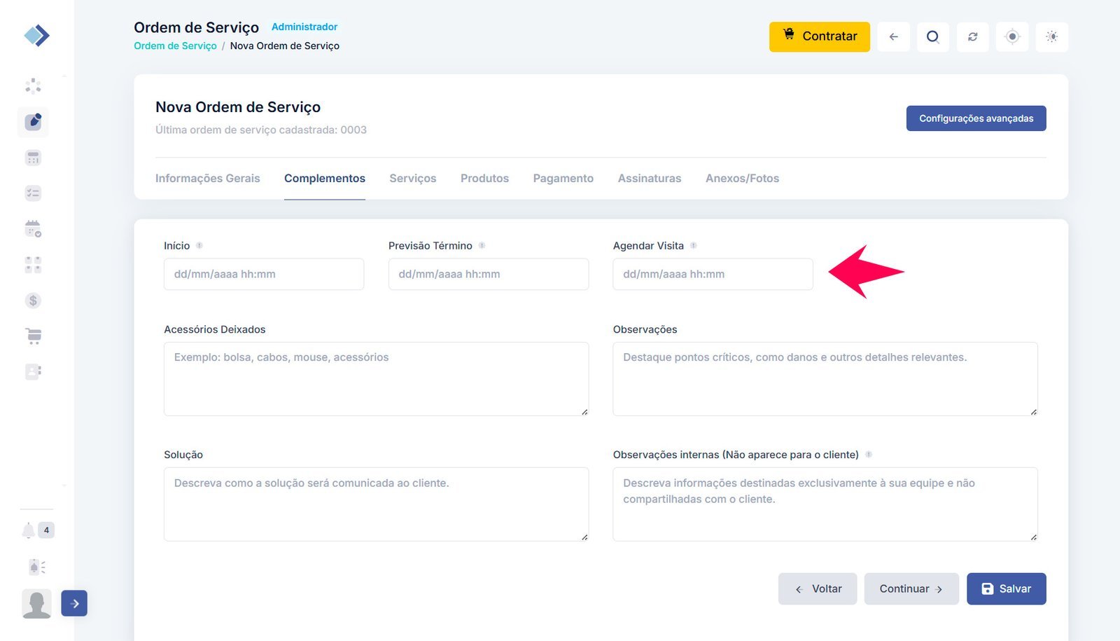 Como agendar uma visita técnica dentro da Ordem de Serviço?