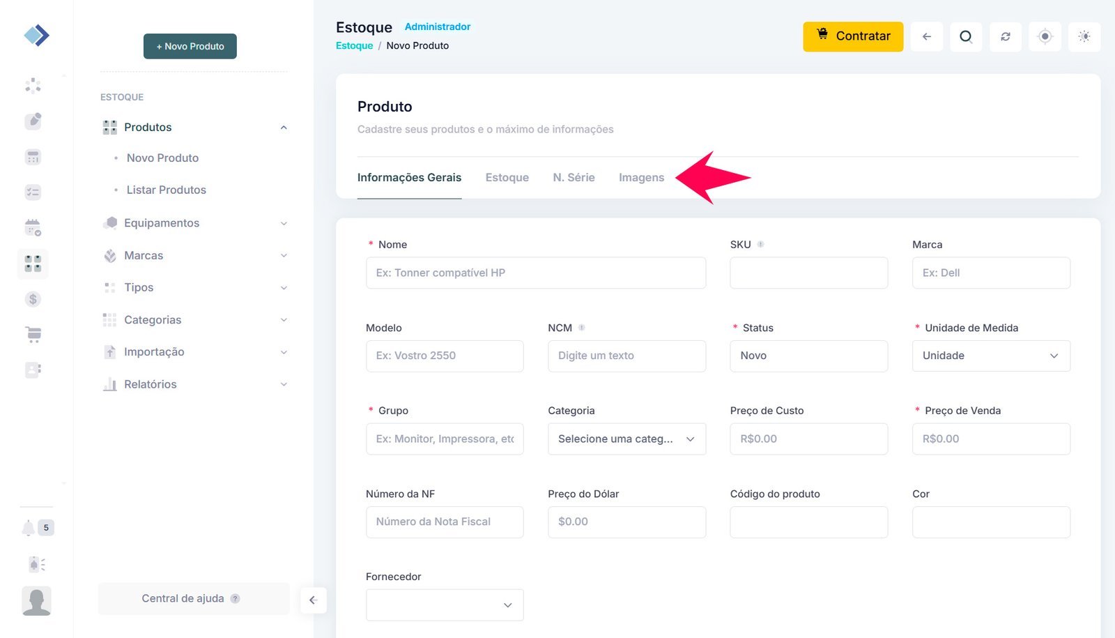 3 – Nas abas Informações Gerais, Estoque, Nº de Série e Imagens (caso seu plano permita), preencha o máximo de informações sobre o produto. Ao finalizar, clique em Salvar para concluir o cadastro.