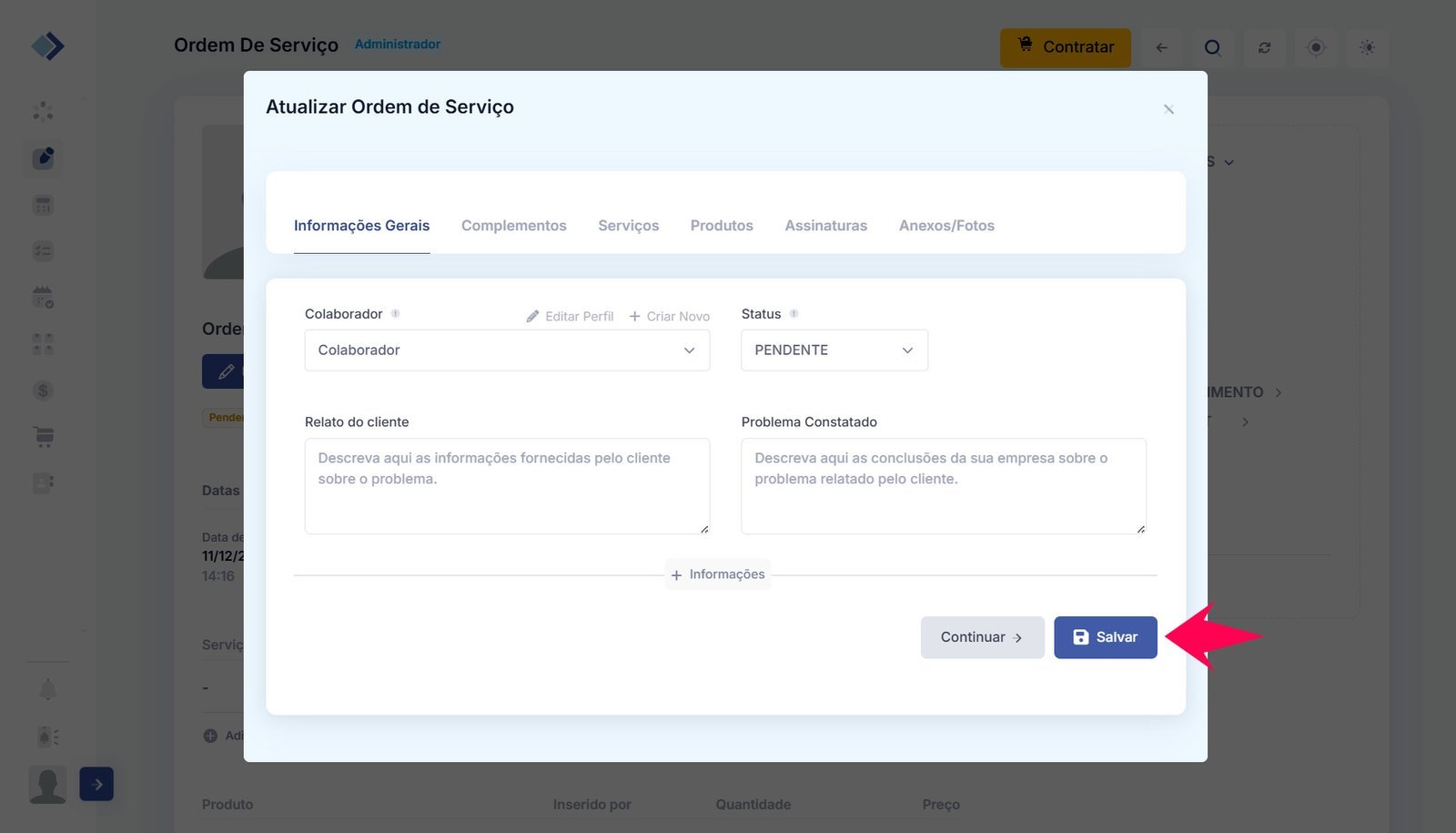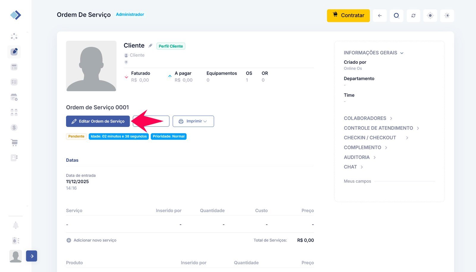 4 – Dentro da ordem de serviço, clique no botão Editar Ordem de Serviço.
