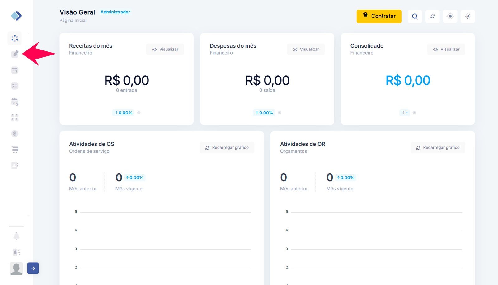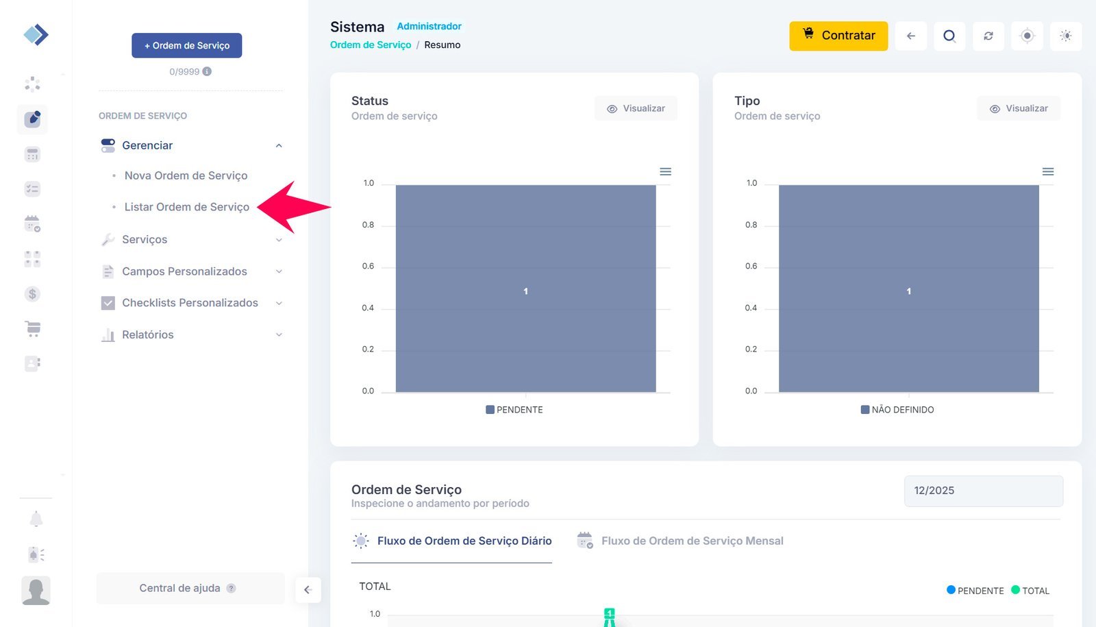 1 – No menu de módulos, localizado ao lado esquerdo, clique em Ordem de Serviço.